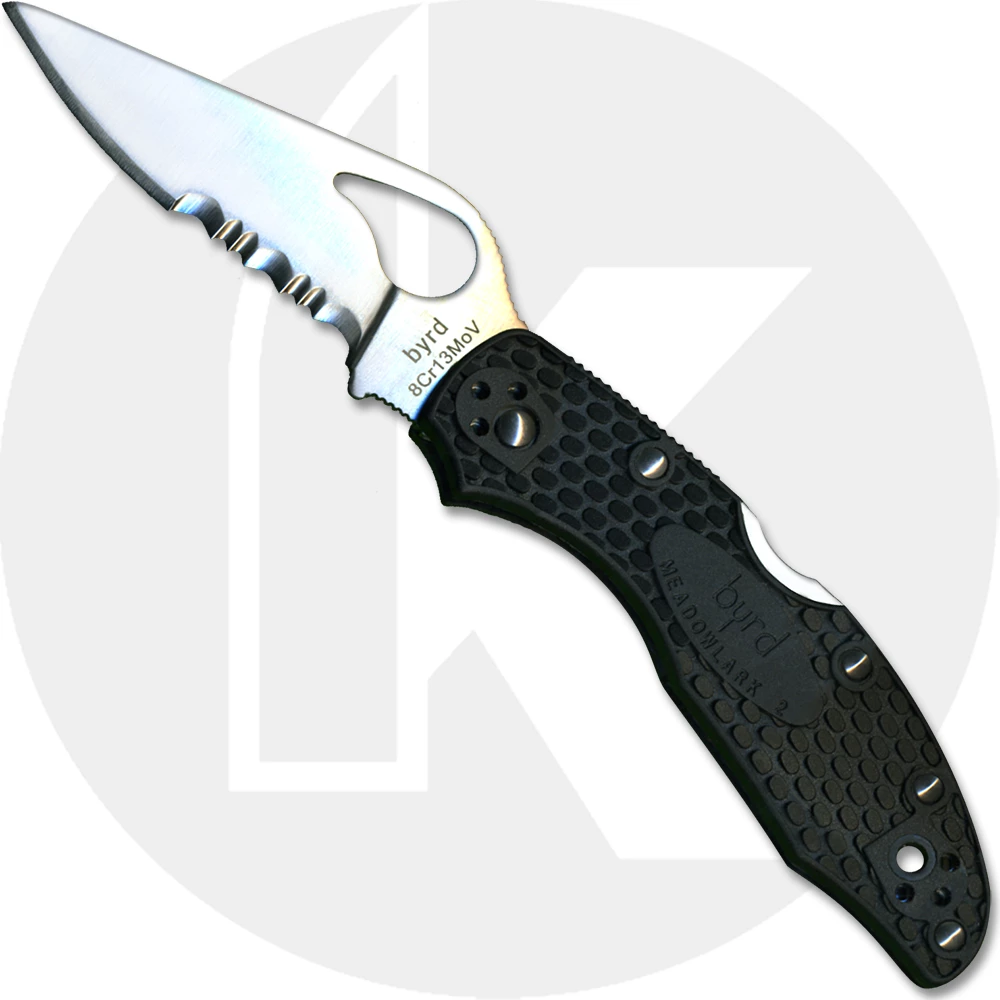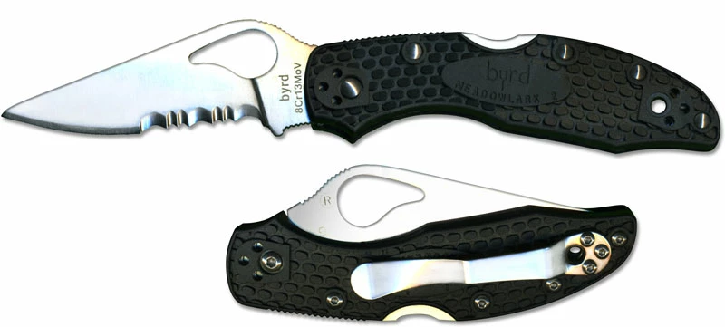 Spyderco Knives: Spyderco Byrd Knife, Meadowlark2 FRN, Part Serrated, SP-BY04PSBK2