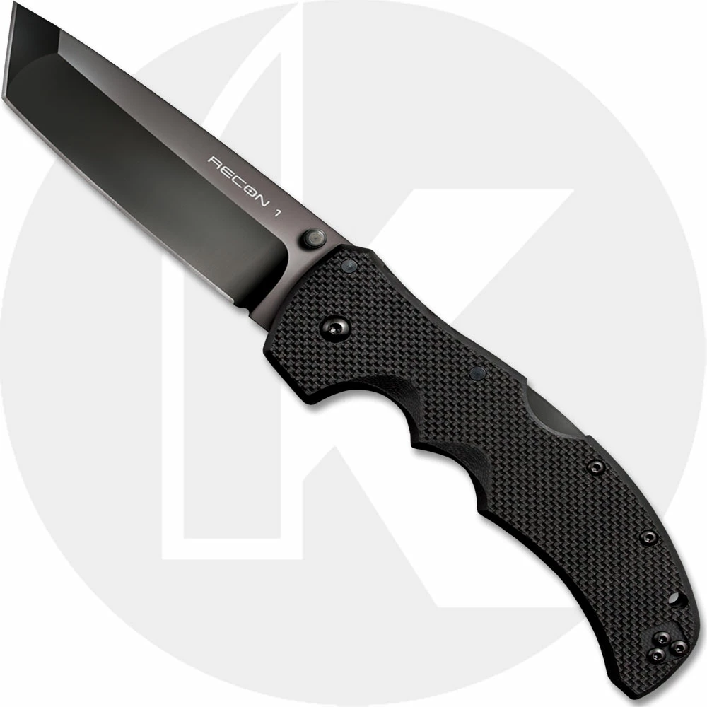 The Cold Steel Recon 1 with CPM S35VN blade steel! The 27BT Recon 1 Knife features a 4 inch tanto blade made of premium CPM S35VN stainless steel, 3.5mm thick, with a non reflective black DLC (Diamond Like Coat) finish, and dual thumb studs for ambidextrous one hand opening. The slim profile textured black G10 handle, 5 3/8 inches closed, has finger grooves for secure grip, sturdy Tri-Ad Lock, a lanyard hole, and ambidextrous pocket clip mounted at the butt end. The Recon 1 Knife with CPM S35VN steel blade has an overall open length of 9 3/8 inches, and it weighs 5.3 ounces. Made in Taiwan.