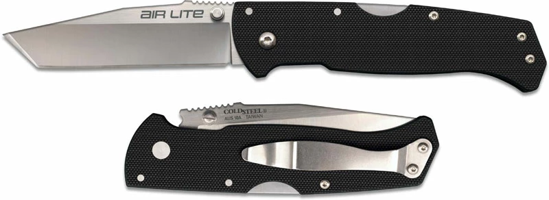 From Cold Steel: We know many of our customers are more and more concerned about the weight and “bulk” of their EDC (every day carry) knife as there is a lot of competition for the limited space in their pockets. That’s why we focused on making a feather light (3.2 oz) ultra slim (8.8 mm thick) folder that can be carried 24/7 while still leaving room in the pocket for other essential gear. But what we didn’t do in our quest to make a super EDC knife was skimp on workmanship and materials. That’s why every Tanto and Drop point blade in our Air Lite series exhibits flawless craftmanship and premium materials. The blades are made from costly Japanese 10A stainless steel famed for its edge holding ability, strength and toughness and the handles are laser cut from real G-10. Even the locking mechanism can’t be beat as there is nothing better than our celebrated Tri-Ad® Lock when it comes to protecting your fingers. Budget friendly pricing, amazing sharpness, and enormously comfortable and useable, the Air Lites are hard to beat for every day carry!