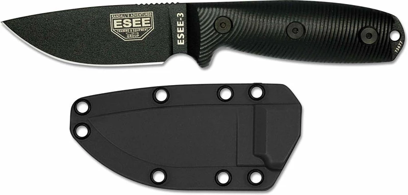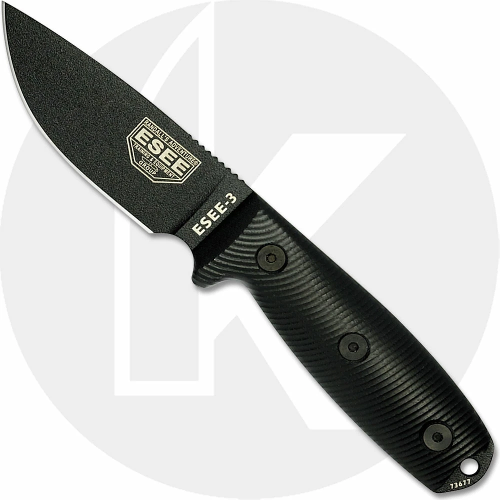 ESEE Knives: ESEE-3 Knife, Black Blade, Black 3D G10 Handle, ESEE-3PMB001