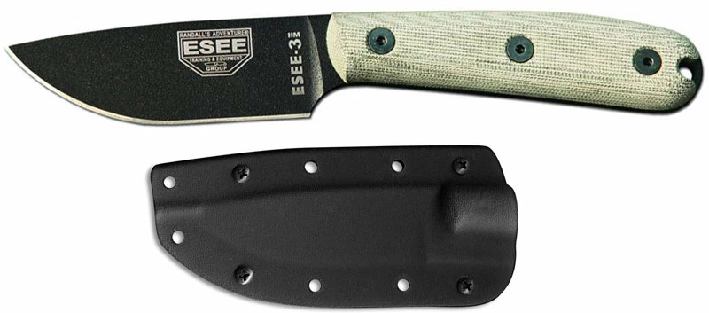 ESEE Knives: ESEE-3HM-K Knife, Black Blade, Black Kydex Sheath, ESEE-3HMK