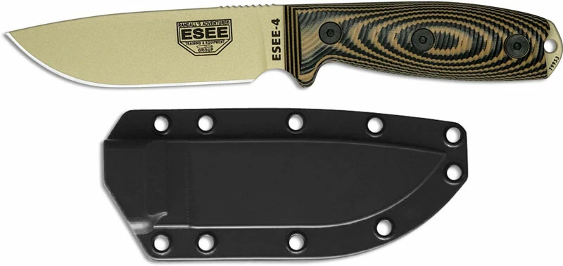ESEE Knives: ESEE-4 Knife, Desert Tan Blade, Coyote / Black 3D G10 Handle, ESEE-4PDT005