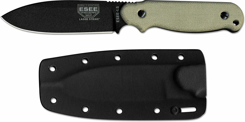 ESEE Knives: ESEE-LS-P-E Laser Strike Knife, Black Blade, Black Molded Sheath, ESEE-LSPE