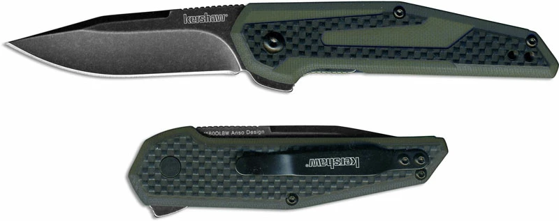 Kershaw Knives: Kershaw Fraxion Knife, Limited Olive G10 and Carbon Fiber, KE-1160OLBW