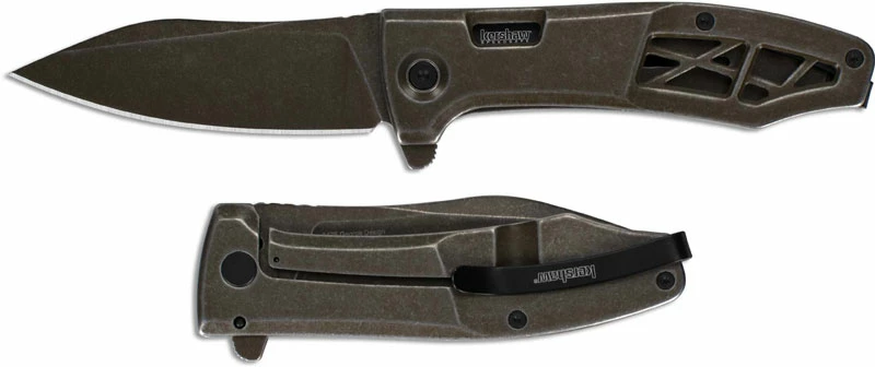 The 3475 Kershaw Boilermaker Knife is a compact workhorse of an EDC, designed by Les George, that features a 3.3 inch modified drop point blade made of 8Cr13MoV stainless steel with a non reflective stonewash brown PVD finish, a swedged tip, notched thumb rest for secure grip, a flipper and SpeedSafe Assist for ambidextrous one hand opening. The stonewash brown PVD stainless steel handle, 4.25 inches closed, has milled cutouts for visual interest and weight reduction, sturdy frame lock, and a deep carry steel pocket clip mounted at the butt end. The Boilermaker Knife has an overall open length of 7.6 inches, and it weighs 4.4 ounces.