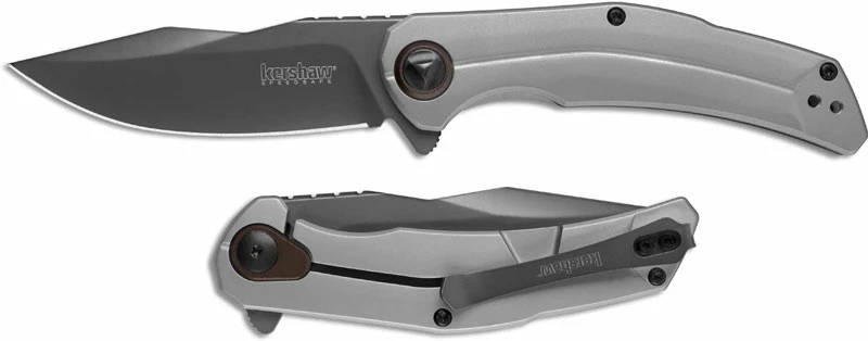 The 2070 Kershaw Believer Knife is a “non run of the mill” everyday carry that features a 3.25 inch modified clip point blade made of 8Cr13MoV stainless steel with a non reflective gray PVD finish, top swedge, a notched thumb rest for secure grip, flipper and SpeedSafe Assist for ambidextrous one hand opening. The slim profile stainless steel handle, 4.2 inches closed, has a bead blast finish, custom pivot with triangular profile and bronze anodized ring, ergonomic contours for comfort, sturdy frame lock with custom bronze anodized overtravel preventer, and a side to side reversible deep carry pocket clip mounted at the butt end. The Kershaw Believer Knife has an overall open length of 7.3 inches, and it weighs 3.8 ounces.