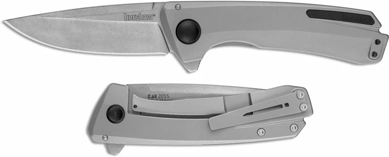 The 2055 Kershaw Comeback Knife is a compact EDC that features a 3.0 inch drop point blade made of 8Cr13MoV stainless steel with stonewash finish, swedged spine, and a flipper for ambidextrous one hand opening. The bead blast stainless steel handle, 4.25 inches closed, has pivot with KVT ball bearing system for smooth opening, oversized black pivot cap, black Kershaw logo inlay and decorative backspacer for visual interest, chamfered contours for comfortable grip, sturdy frame lock, and a side to side reversible pocket clip mounted at the butt end. The Kershaw Comeback Knife has an overall open length of 7.5 inches, and it weighs 4.5 ounces.
