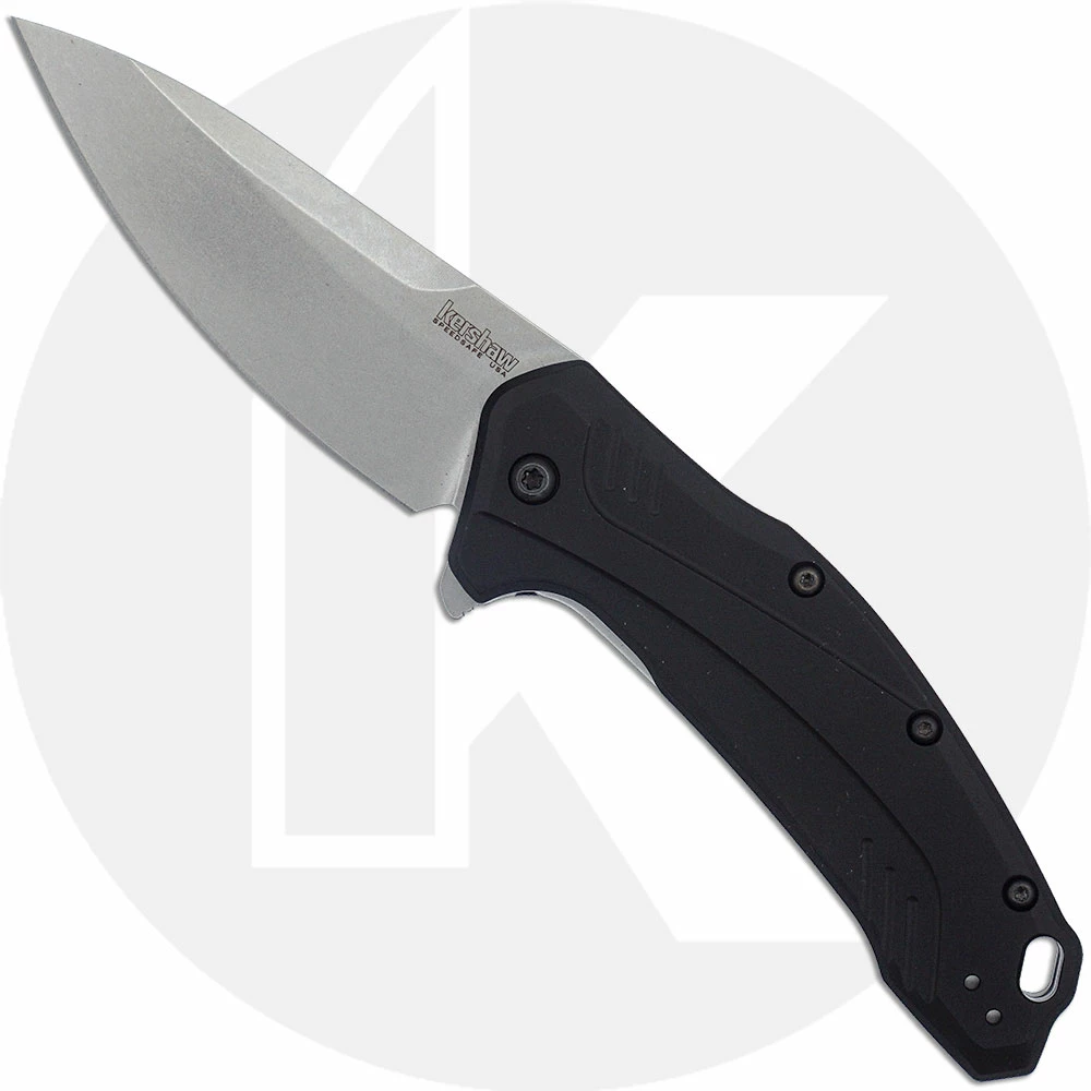 Kershaw Knives: Kershaw Link Knife, Stonewash 20CV with Black Aluminum Handle, KE-1776BLK20CV
