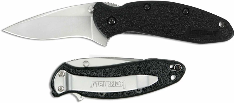 The Kershaw Scallion features a 2 1/4″ 420 high carbon stainless steel blade with bead blast finish, dual thumb studs, ambidextrous Index Finger Opening extension and Speed-Safe assist. Black glass filled nylon handle, 3 1/2″ closed, with liner lock, blade safety (located at the butt end: slide button to free the blade tip), lanyard hole and pocket clip. 2.3oz