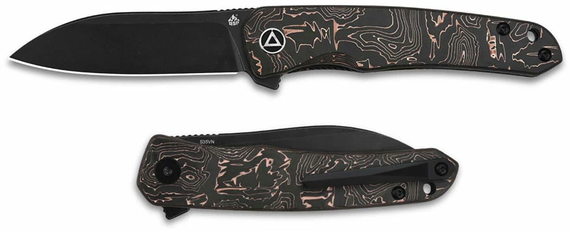 QSP Knives: QSP Otter Knife, Black Blade, Copper Foil Carbon Fiber, QSP-140B2