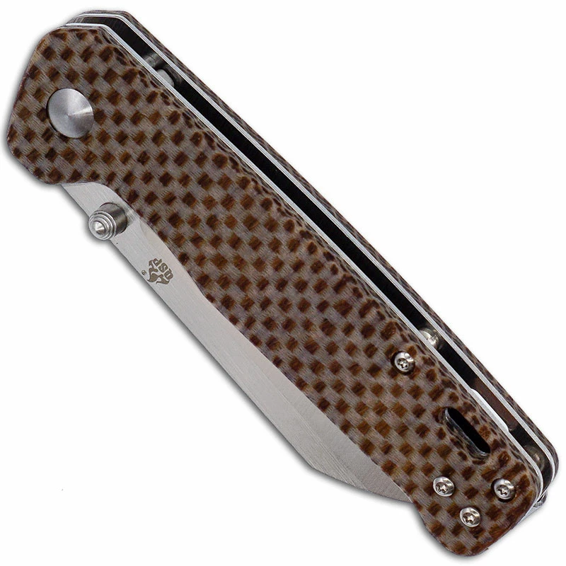 QSP Knives: QSP Penguin, 2 Tone Satin Blade, Linen Micarta Handle, QSP-130A
